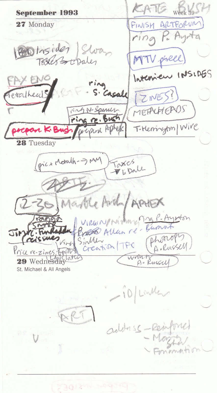 The interview with Kirsty and Julian below took place on Monday 27th September 1993, at the Stockpot Restaurant on King’s Road,  London. I can be that precise because a few years ago I found a sheaf of old Filofax pages in a box: the very next day I interviewed Aphex Twin and later that week made contact with the ambient jungle labels Moving Shadow and Reinforced –making for almost a clean sweep of future-minded early Nineties U.K. pop!